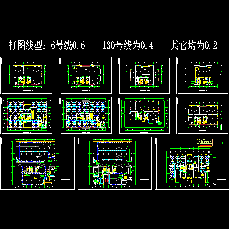 某综合楼空调施工图 含图纸11张,为某综合楼空调施工平面图纸,也含排烟图纸。
