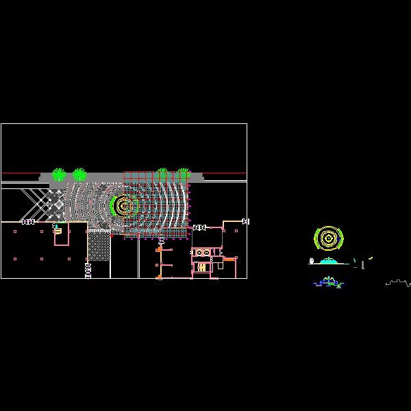 原创的商业街入口水景,节点详细,图纸完整,有较强的参考价值。图一还附送商业街此处的铺装图,值得一看。