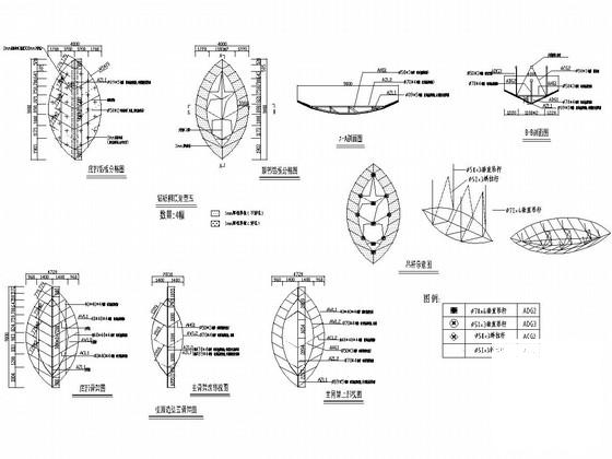 商场中庭花架下吊挂钢结构叶子结构CAD施工大样图